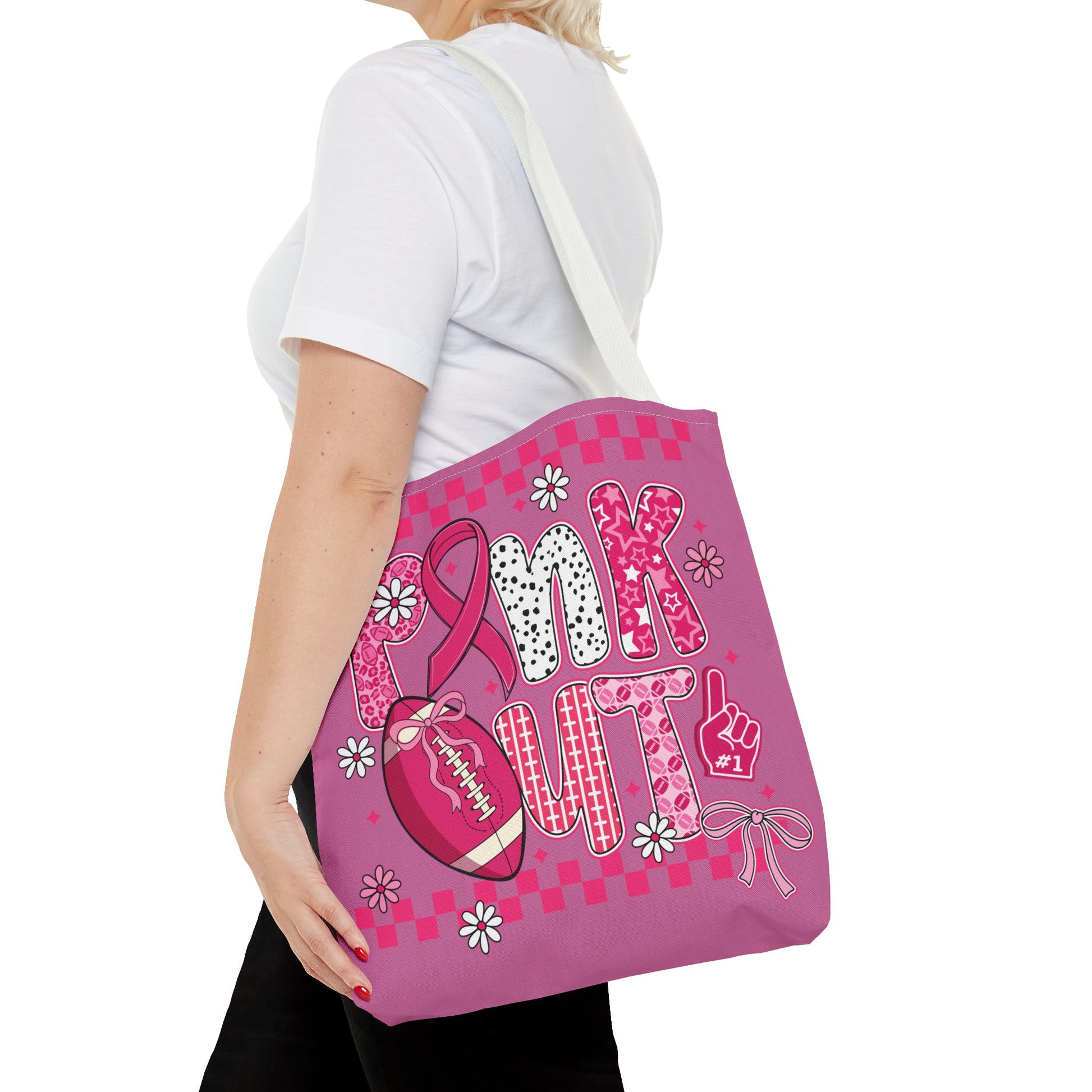 This Cancer Awareness Tote Bag is made with 100% polyester, a durable and versatile fabric perfect for everyday use. The bag features reinforced stitching on handles, boxed corners for added room, and comes in 5 color handle options. Show your support for cancer awareness while carrying your essentials in this functional and stylish tote bag. Perfect for those looking to make a statement and support a cause close to their heart.