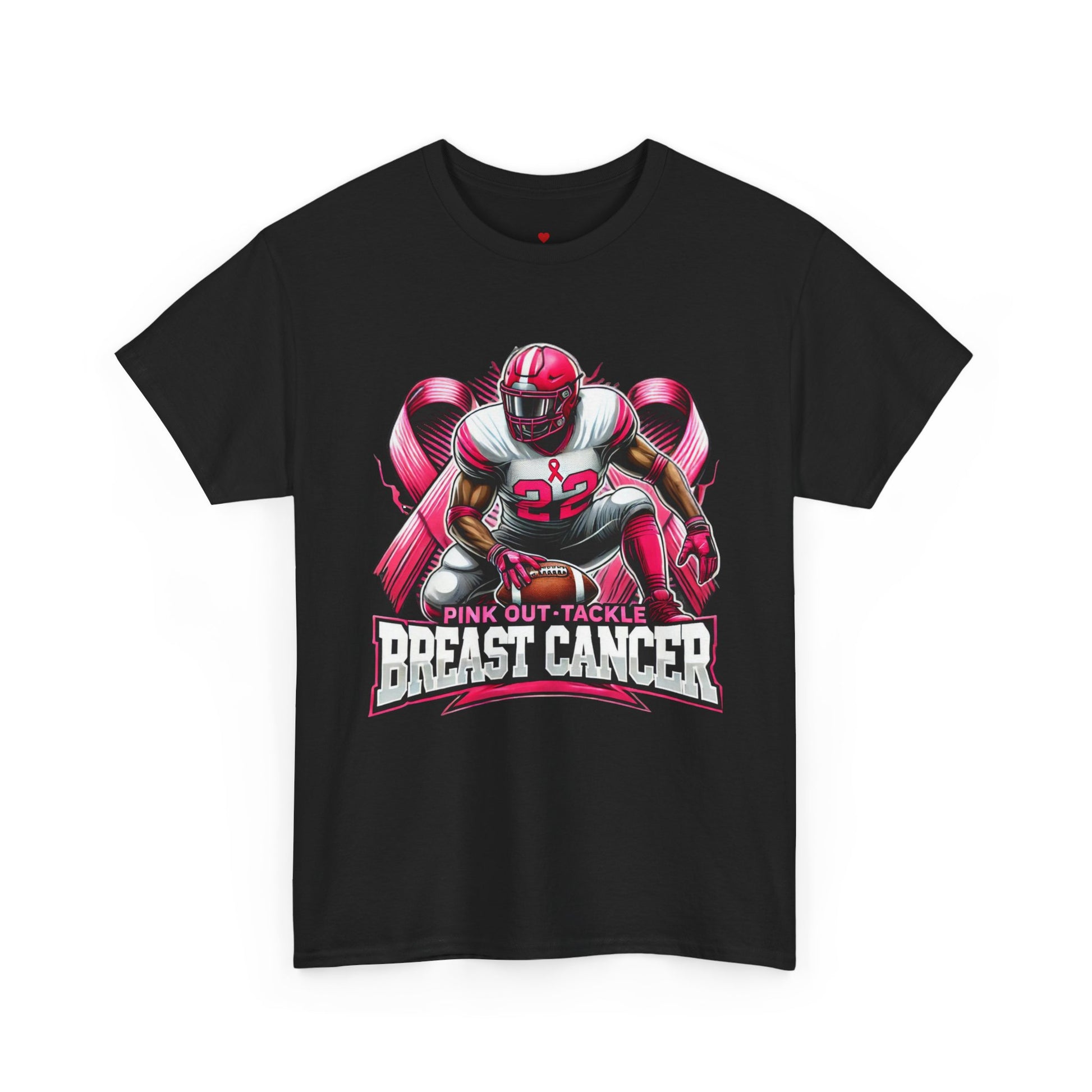 Tackle Breast Cancer awareness tee, perfect for those wanting to show support and raise awareness. This unisex heavy cotton tee offers a classic fit for a comfortable and relaxed wear, suitable for adults. It is made with high-quality fabric for printing, ensuring durability and sustainability. The tee features shoulder tape, ribbed knit collar, and is made in Nicaragua with dual printing techniques for detailed designs.